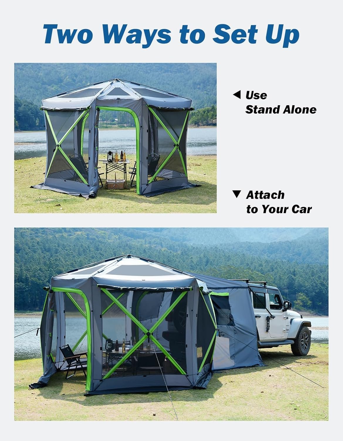 Dual-Use Pop up SUV Tents for Camping, 10 x10.5 Ft Big Space 2 Rooms Car Tent, SUV Tailgate Tent for Family Camping, 5 Sides Canopy, Portable Carry Bag, Gray Green